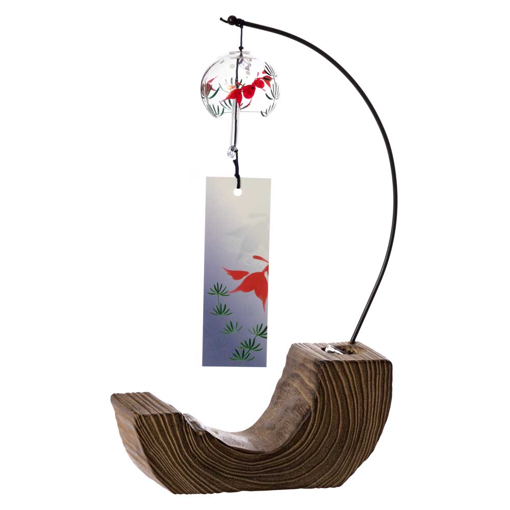 舟型 会津桐卓上風鈴・置き風鈴 金魚 ガラス風鈴 蒔絵を施したハンドクラフト製 花生け付 木之本 福島県の工芸品 ※在庫限り