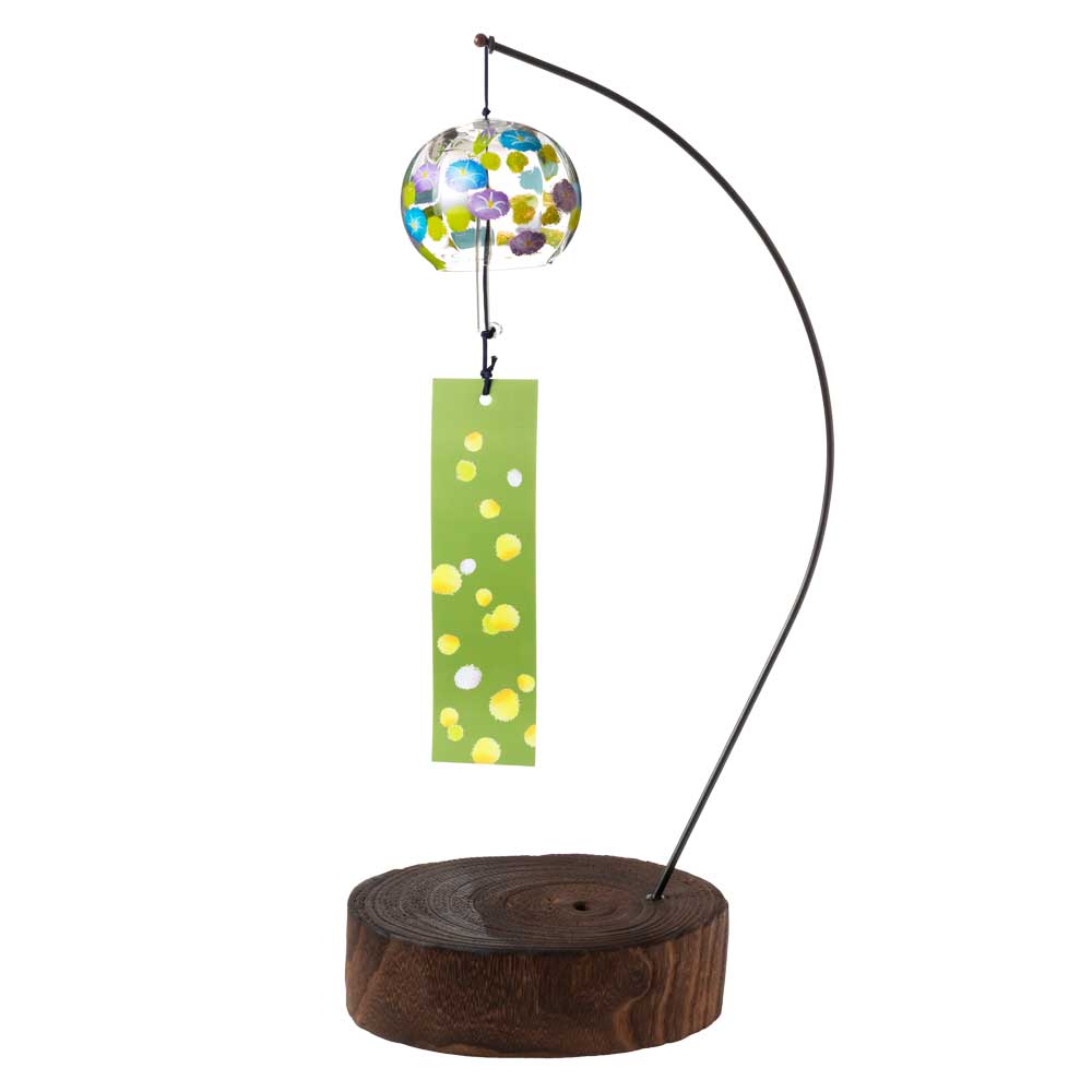木之本 ぎやまん風鈴+スタンドセット ボタニカル 室内卓上飾り用 クリスタルガラス ハンドクラフト 和風和柄のウィンドチャイム 日...