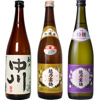 越後流旨口 潟 本醸造 720ml と 越乃寒梅 別撰 吟醸 720mlと越乃寒梅 特撰 吟醸 720ml