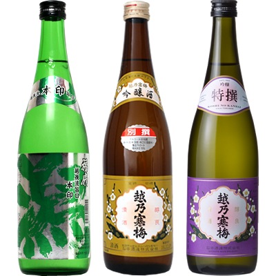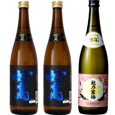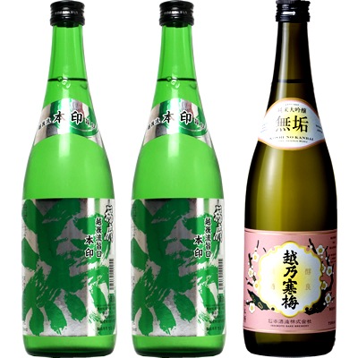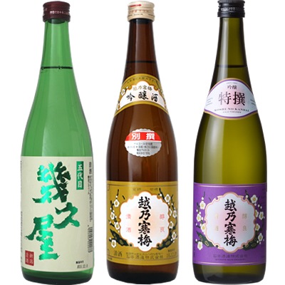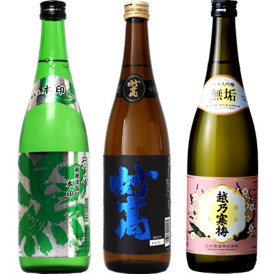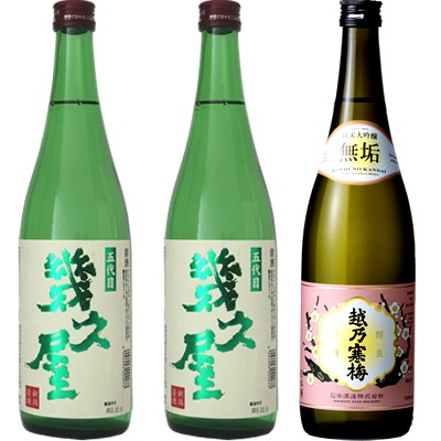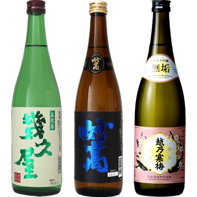 五代目 幾久屋 720ml と 妙高 旨口四段 720mlと越乃寒梅 無垢 純米大吟醸 720ml