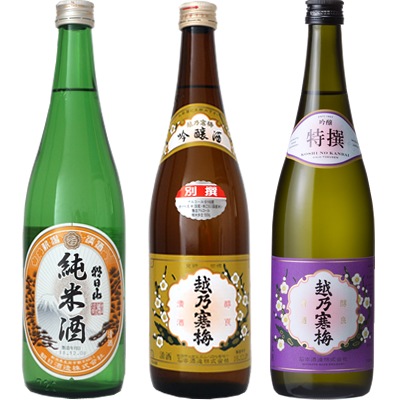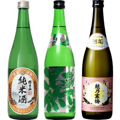朝日山 純米酒 720ml と 越後流旨口 潟 本醸造 720mlと越乃寒梅 無垢 純米大吟醸 720ml