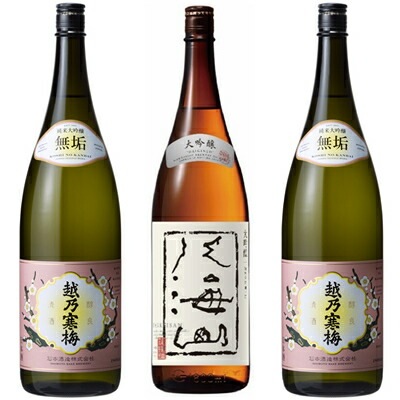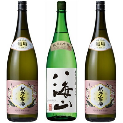 越乃寒梅 無垢 純米大吟醸 1800mlと八海山 大吟醸 1800ml と 越乃寒梅 無垢 純米大吟醸 1800ml 日本酒 3本...
