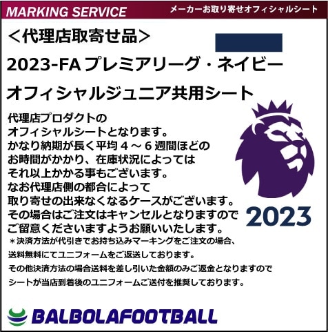 <オフィシャル>2023-プレミアリーグジュニア共用シート(ネイビー・背番号1桁・全選手対応可能)*お取り寄せ品