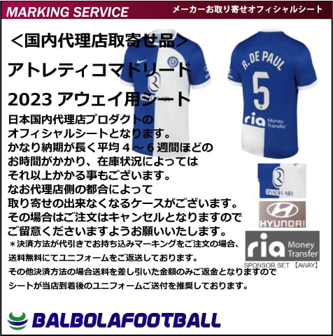 <オフィシャル>アトレティコマドリード23アウェイ用シート