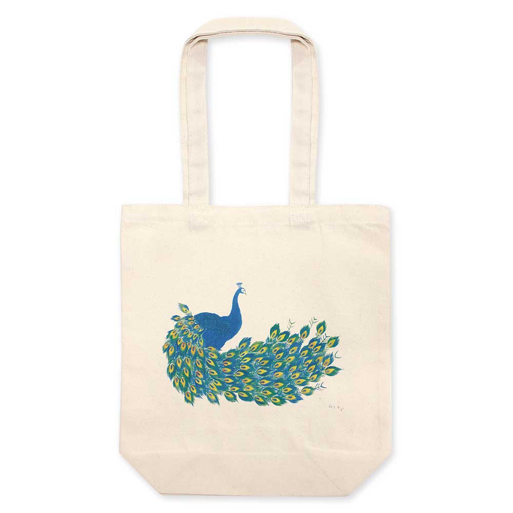 和詩倶楽部 ハコビムシ トートバッグM あらだつ時 コットンの丈夫な手提げ袋 クジャク 孔雀 戦う姿が美しいこともある