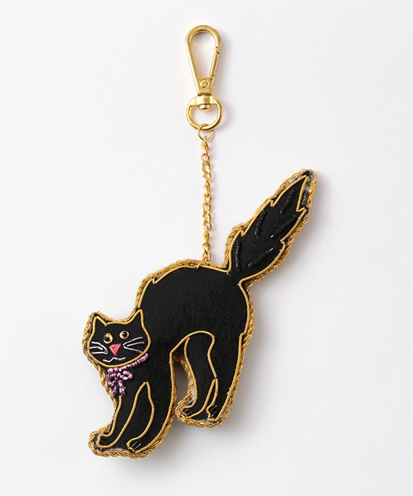 ザリ刺繍 ブラックキャット バッグチャーム(キーホルダー) M21-2853