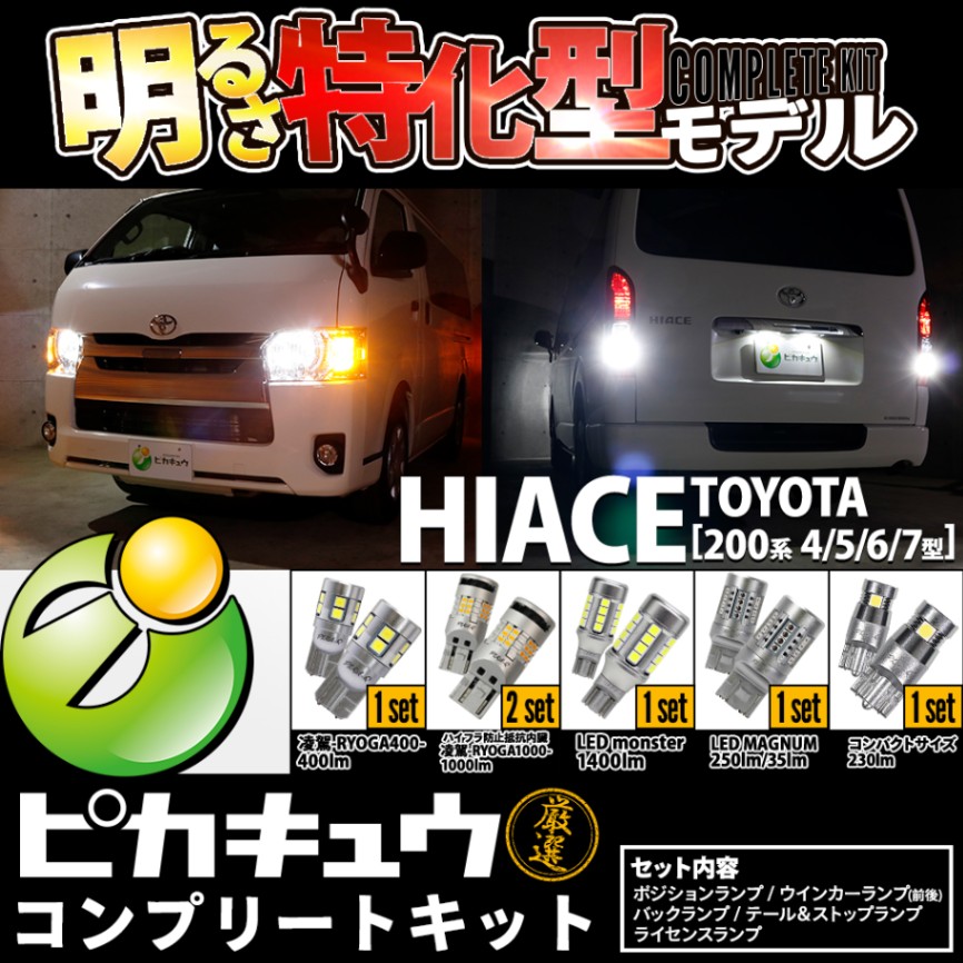 【定価41250円→39187円】 トヨタ ハイエース[200系 4/5/6/7型]対応 ピカキュウ厳選 LED コンプリートキッ...