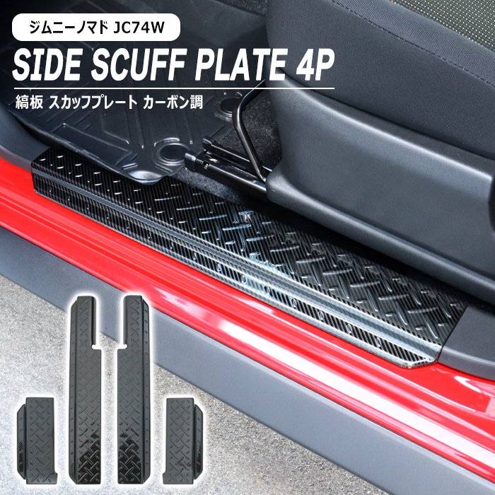 スズキ ジムニーノマド JC74W 縞板 サイド スカッフプレート 左右 4Pセット カーボン調 新品 サイドステップ ガード サ...
