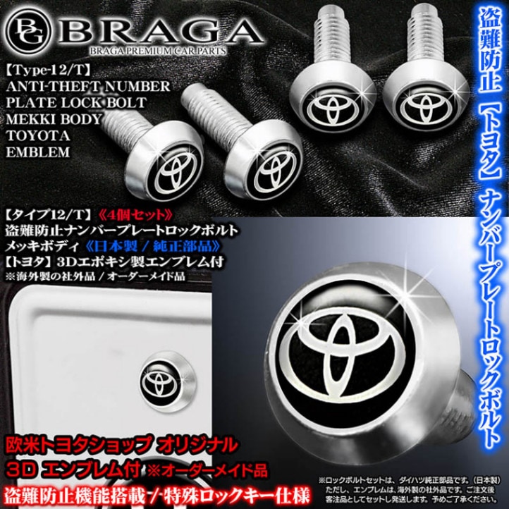 [タイプ12/T]4個入/盗難防止ナンバープレート ロックボルト純正品【トヨタ3Dエンブレム付/海外社外品/客注品】メッキボディ[...