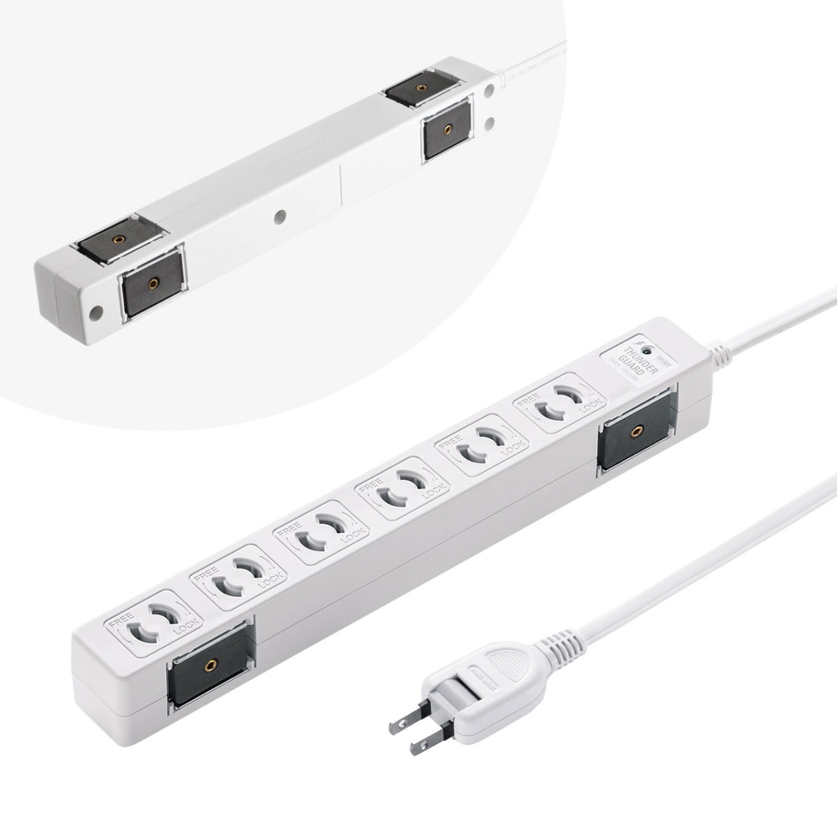[TAP-36MG-5] 抜け止めタイプ一括集中スイッチ付き&ブレーカー内蔵電源タップ(3P・6個口・5m・ホワイト)