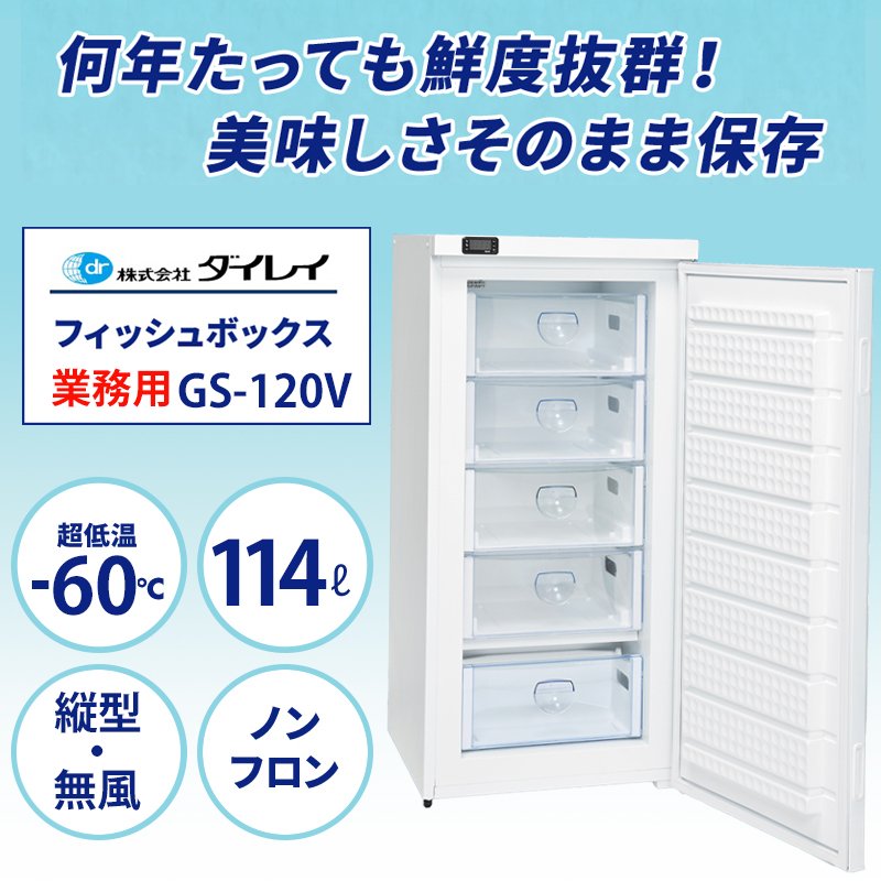 <メーカー直送>ダイレイ フィッシュボックス GS-120V eco 業務用 冷凍庫 マイナス60度 -60度 114L 超低温...