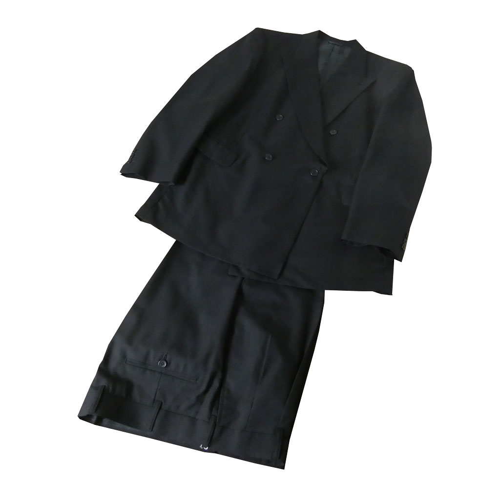 HAI-VASERON(ハイバセロン) ダブルフォーマル メンズ 春夏秋用 礼服 4ツボタン ウール100% ブラック 6000 ...