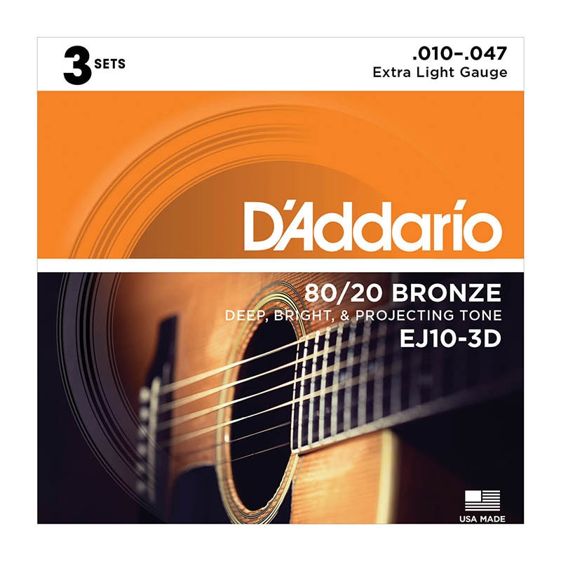 Daddario アコースティック弦 80/20 Bronze Round Wound EJ10-3D 3セットパック〈ダダリオ〉