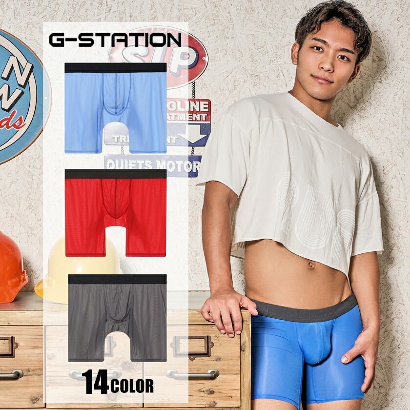 ボクサーパンツ メンズ G-Station/ジーステーション ウルトラライト透けリブ 立体ロゴ ショートメンズボクサーパンツ メン...