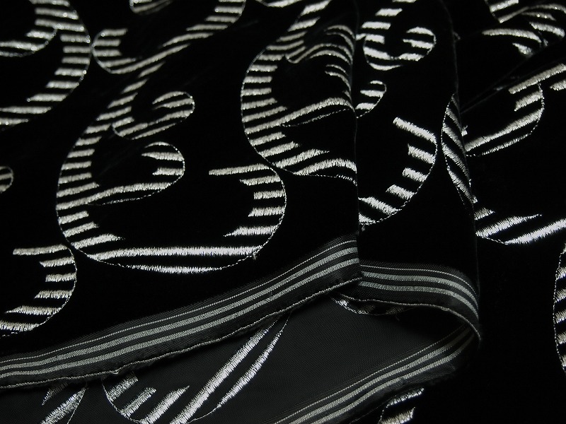閉店大セール お買得 【ベルベット/オールオーバー/レース】 日本製生地 黒/刺繍銀ラメ 90cm巾3.0m 2381-687 【...