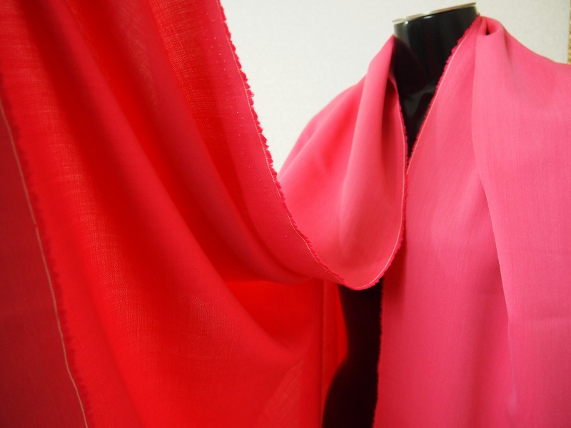 閉店大セール お買得 【シルクウール無地】 イタリー製,輸入生地, ピンク/オレンジ シルク30% ウール70% 140cm巾2....