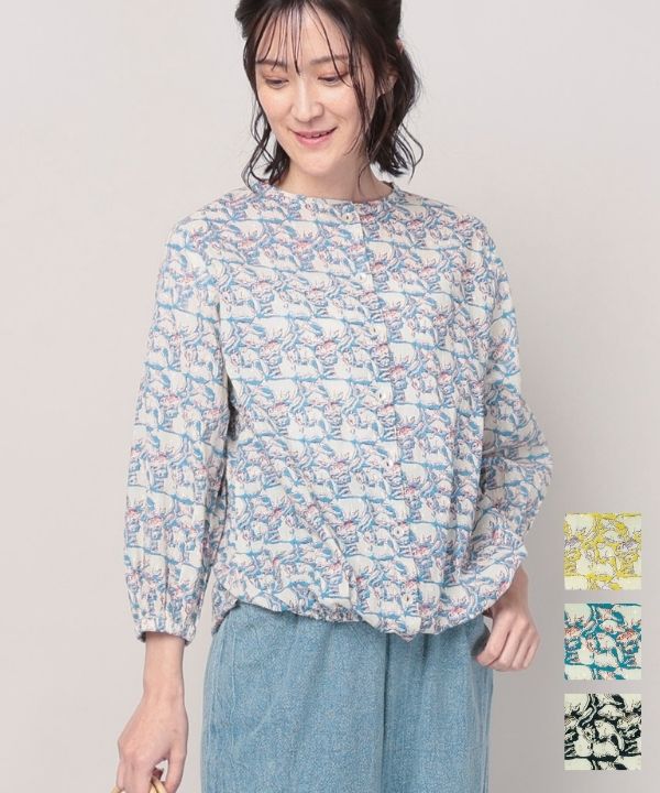 動物プリントコットンドビーブラウス