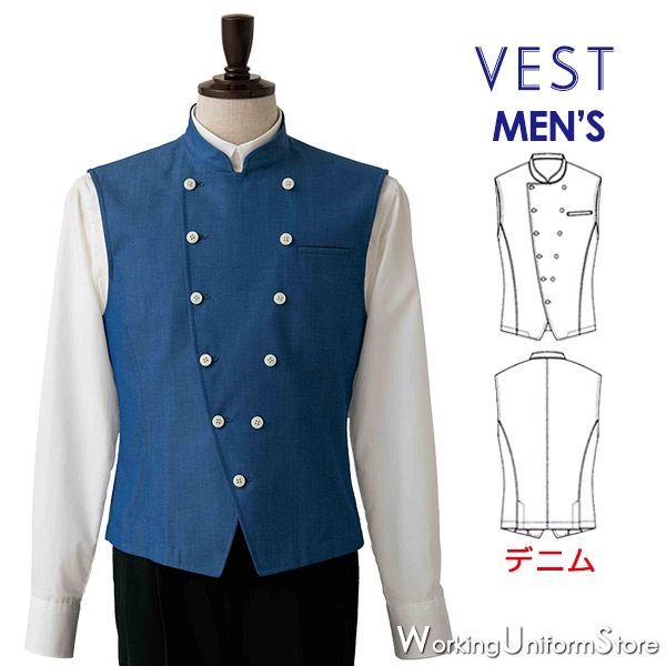 レストラン 配膳 男性用サービングベスト DJ2624 先染めデニム セブンユニフォーム